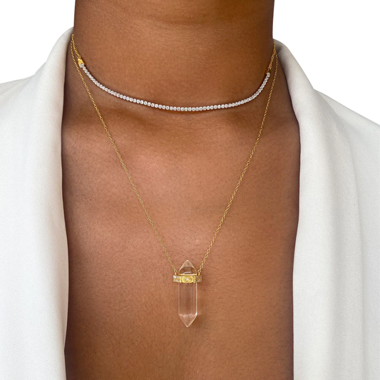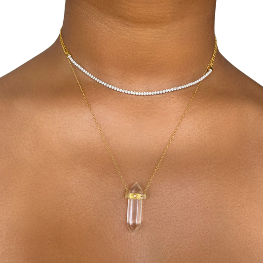 Nadia Sparkling Tennis Necklace - 925 Sterling Silver with 18K Gold Plating