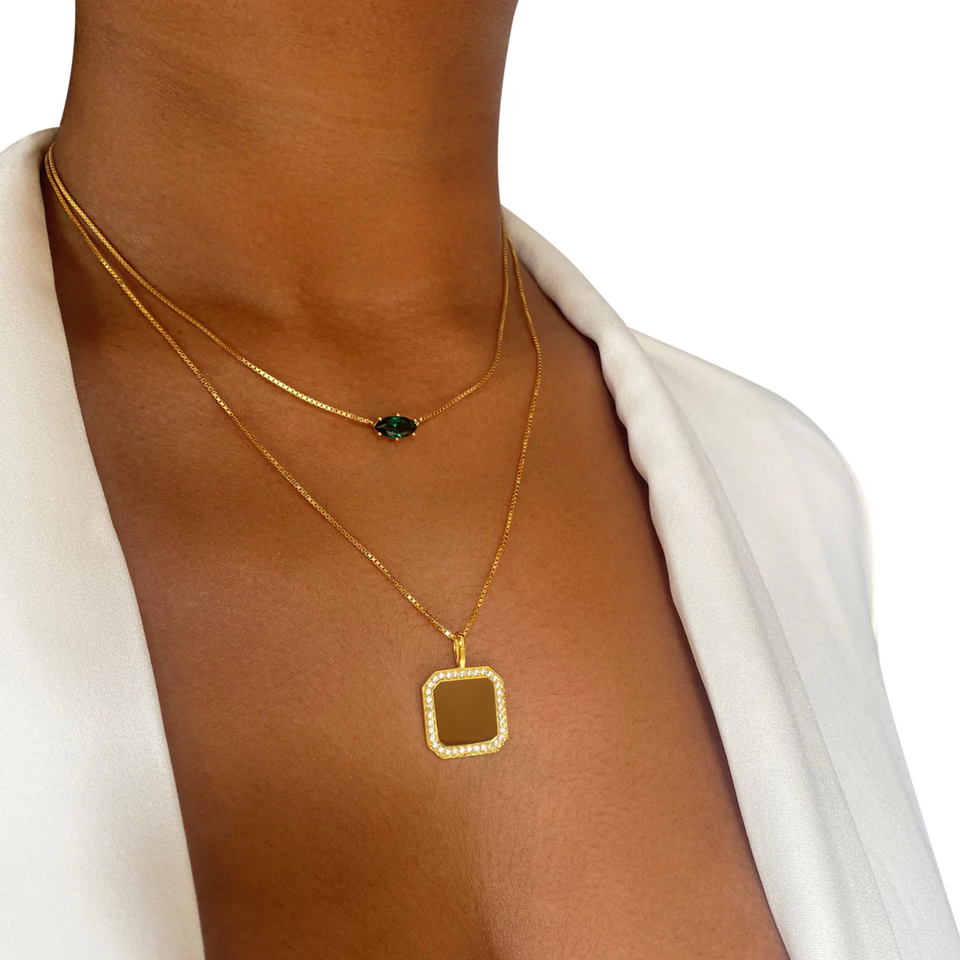 Adina Green Pendant Necklace -925 Sterling Silver Necklace with 18k Gold Plating